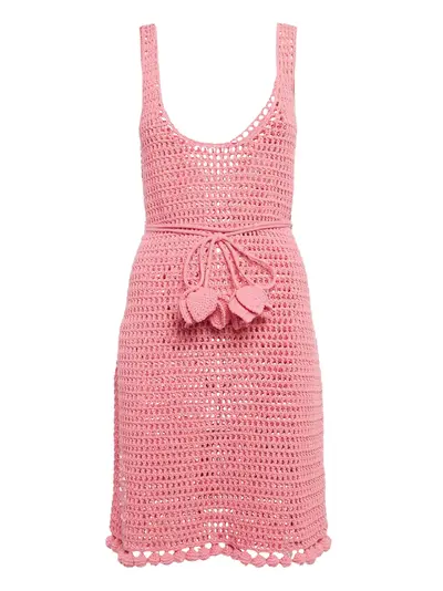 pink crochet design pom-pom trim waist tie Condition: EXCELLENT. This previously owned item is in near-perfect condition with no signs of damage or use.