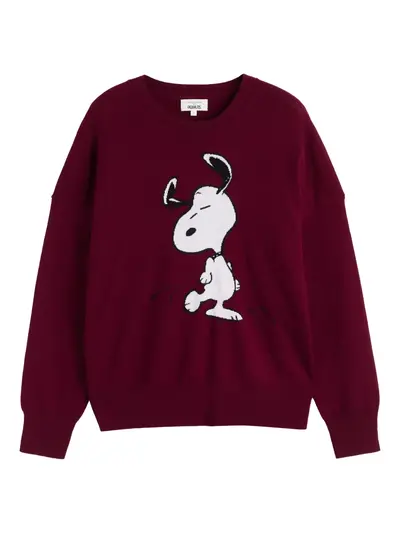 red wool/cashmere Snoopy graphic round neck long sleeves ribbed knit trim