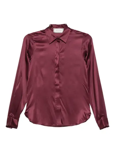red long sleeves button fastening point collar buttoned cuffs