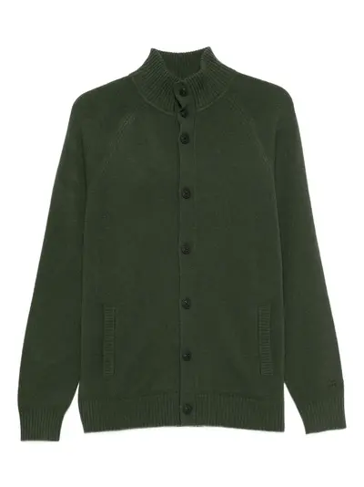 green front button fastening high neck side pockets long sleeves ribbed hem