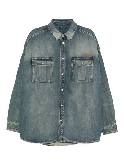 dark blue two chest flap pockets front button fastening long sleeves buttoned cuffs logo detail