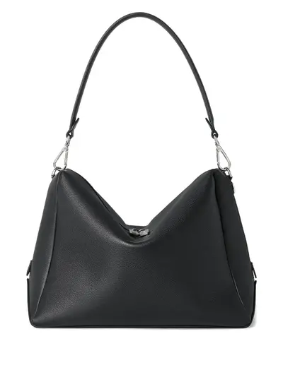 black grained finish detachable shoulder straps zip closure logo detail silver-tone hardware