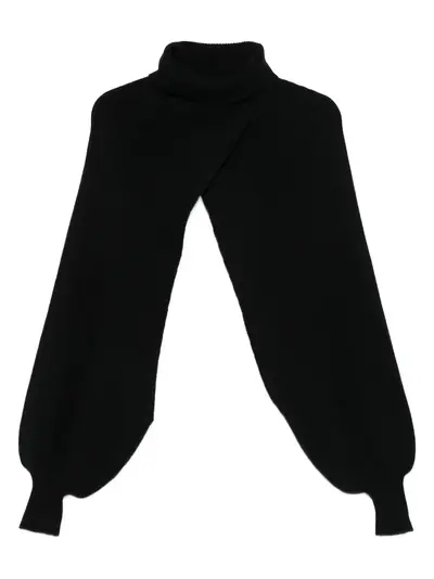 black ribbed knit roll neck long sleeves wrap design fitted cuffs
