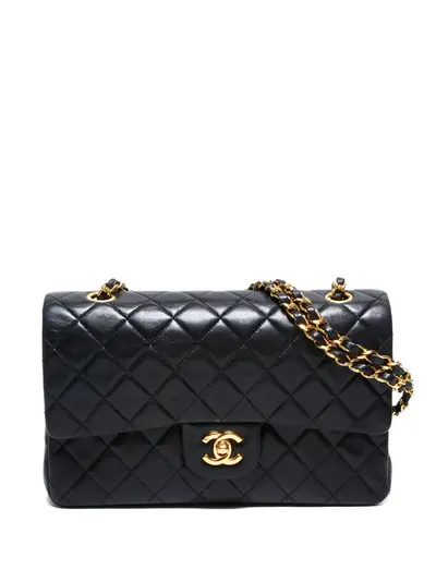 1989-1991 black quilted gold-tone hardware chain double flap shoulder bag Condition: GOOD. This previously owned and used item is in good condition with minimal signs of use. This may include fading of material or plating and scratches. Serial Number: 1600275