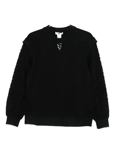 black lace sleeves embellishment detail round neck long sleeves ribbed hem