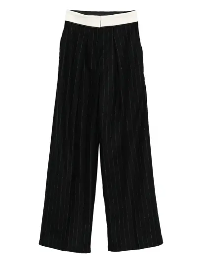 black wool blend pinstripe detailing concealed front fastening wide-leg side slit pockets rear welt pocket