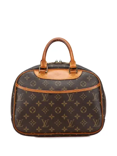 monogram canvas with vachetta leather trim rolled vachetta leather handles top zip closure exterior front slip pocket interior open pockets brown Serial Number: BA0044 This item has no inclusions. Condition: GOOD. This previously owned and used item is in good condition with minimal signs of use. This may include fading of material or plating and scratches. Due to the exclusivity of this item and its limited availability, processing and delivery might take longer than usual. Declared Damages: Handle/Strap Feature(s) Moderate Discoloration. Please refer to the photos on this product page for a detailed view of the item, including any damages declared.