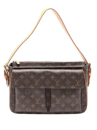 monogram canvas body adjustable vachetta leather shoulder strap exterior front flap pockets top zip closure interior slip pockets brown Serial Number: MI0034 This item has no inclusions. Condition: EXCELLENT. This previously owned item is in near-perfect condition with no signs of damage or use. Due to the exclusivity of this item and its limited availability, processing and delivery might take longer than usual. Please refer to the photos on this product page for a detailed view of the item, including any damages declared.