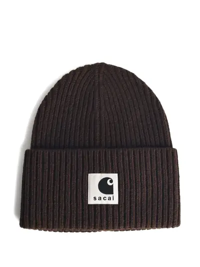 Sacai logo-patch tibbed beanie 32221845 (lpn31018772)
