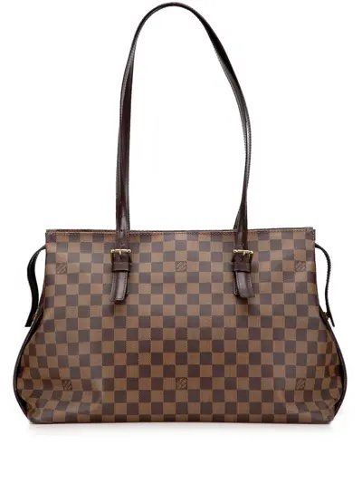 damier ebene canvas body with leather trim flat leather shoulder straps top zip closures interior zip pocket brown Serial Number: TH0096 Inclusions: padlock. Condition: GOOD. This previously owned and used item is in good condition with minimal signs of use. This may include fading of material or plating and scratches. Declared Damages: Handle/Strap Feature(s) Minor Loose Stitching. Exterior Bottom Feature(s) Moderate Scratches. Please refer to the photos on this product page for a detailed view of the item, including any damages declared.