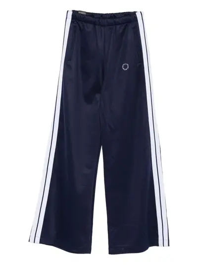 navy blue side stripes elasticated waistband side zip pockets logo detail