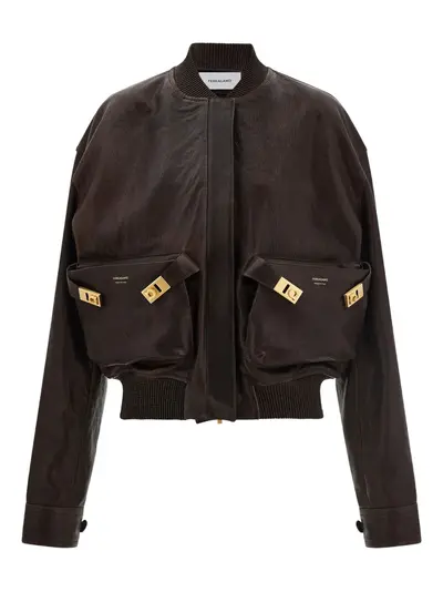 dark brown leather wrinkled finish patch pockets gold-tone buckles ribbed trims