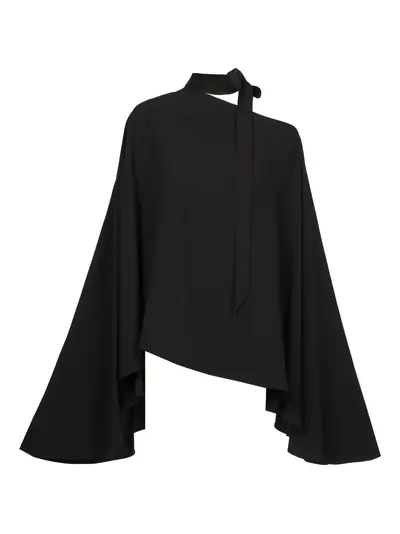 black tie detail one-shoulder design wide sleeves asymmetric hem