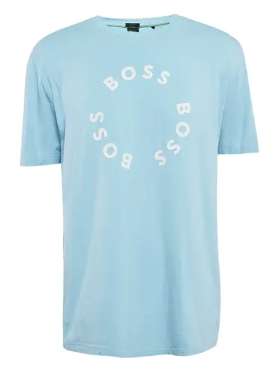 light blue circular logo short sleeves crew neck Condition: GOOD. This previously owned and used item is in good condition with minimal signs of use. This may include fading of material or plating and scratches.