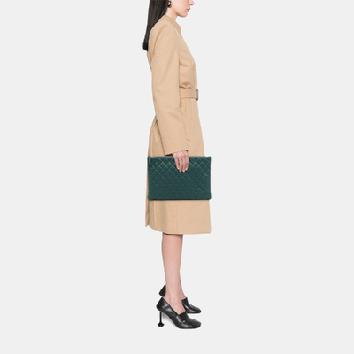 Bold yet refined, this oversized clutch melds resilience with luxury. Crafted from textured caviar leather, its clean lines and distinctive quilting evoke a contemporary edge, making it a striking accessory for the modern tastemaker seeking both form and function.