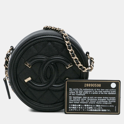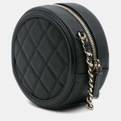 Chanel Black Caviar CC Filigree Round Clutch with Chain 1224545 - 1
