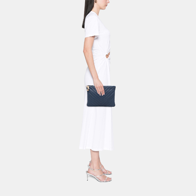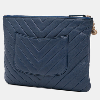 Fusing classic craftsmanship with artistic symbolism, this clutch features a chevron pattern rendered in luxurious caviar leather, accented by subtle ancient Greek inspired charms. The medium size offers a bold statement while maintaining an air of refined mystery.