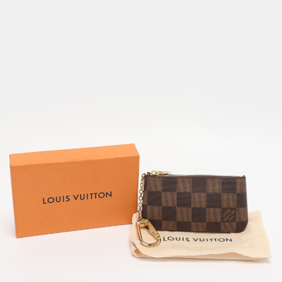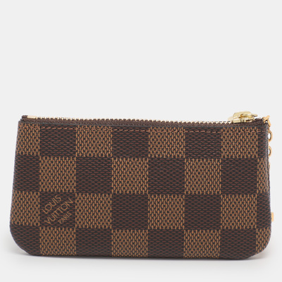 Louis Vuitton’s key pouch in Damier Ebene canvas combines compact utility with iconic patterning. Its secure zip and key hook make it an ideal mini wallet or bag organiser. Use it alone for quick errands or clip it inside a larger LV bag for coordinated style.