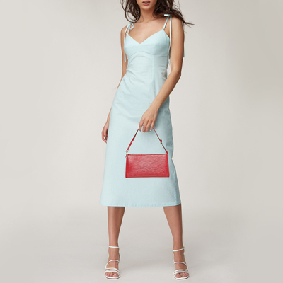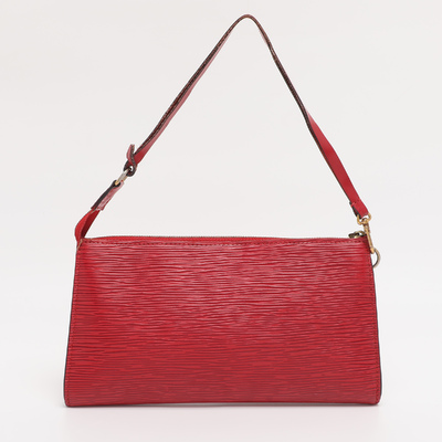 In textured Epi leather, this vintage Pochette Accessoires is presented in vivid Castilian Red. Its sleek silhouette and durable finish embody Louis Vuitton’s ability to balance everyday wear with modern sophistication.