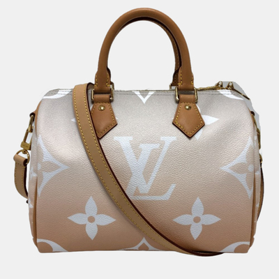 A bold take on a classic, this Louis Vuitton Speedy Bandouliere 25 features Monogram Giant canvas in soft pink gradient tones. With a structured yet lightweight feel, it offers versatile wear as a shoulder or handheld bag.