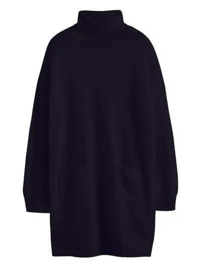 navy blue roll neck front patch pockets side slit long sleeves above-the-knee length