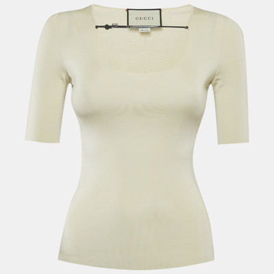 Gucci Beige Leather Trim Stretch Knit Top XS 1224257 (бежевый, lpn31018978)