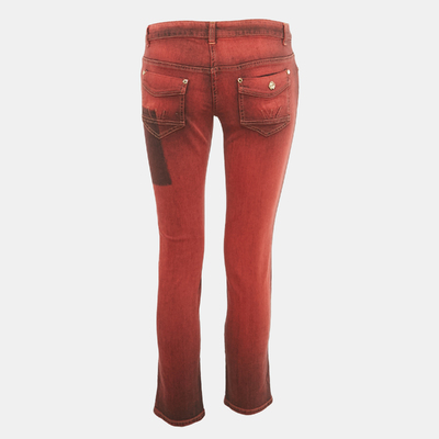 Roberto Cavalli updates classic denim with bold flair in this red skinny pair. Tailored for a flattering fit, the jeans showcase the house’s signature use of daring color and youthful design. Ideal for day to night styling, they bring a striking element to casual wardrobes, easily balanced with neutral tops or statement prints.
