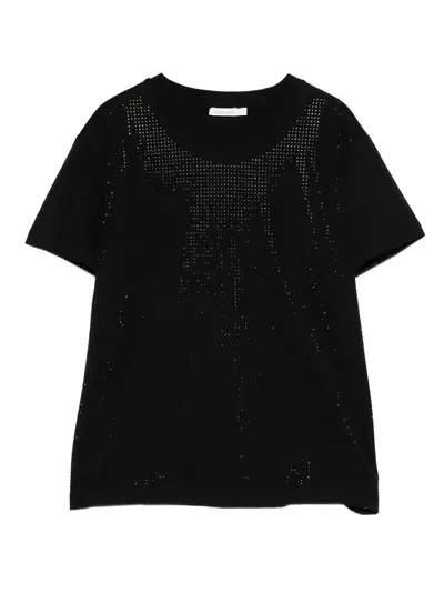 black cotton round neck short sleeves rhinestone embellishment straight hem