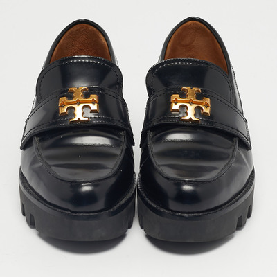 Classic meets contemporary in these Tory Burch Everly loafers, crafted from black leather with a chunky sole. Comfortable and stylish, they add a polished edge to both casual and workwear outfits.