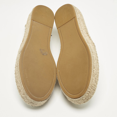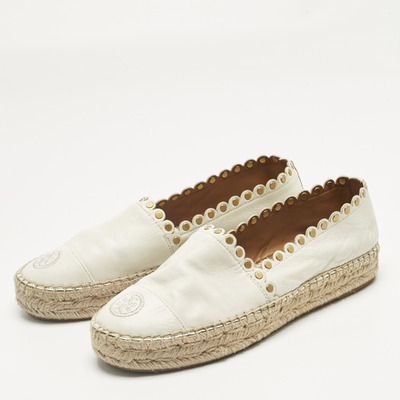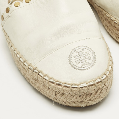 Tory Burch Cream Leather Embroidered Logo Espadrille Flats Size 38.5 1224262 (lpn31019023)