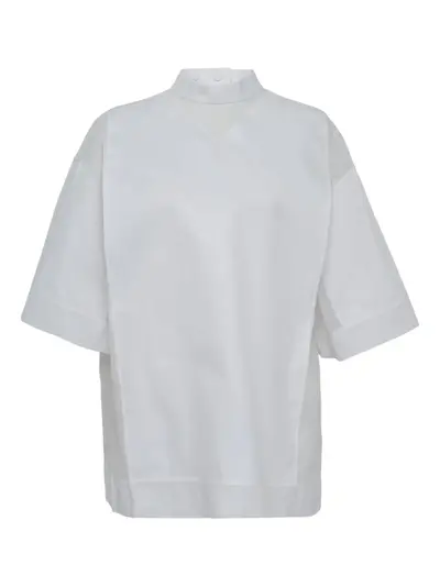white short sleeves button fastening high neck boxy shape sheer panel