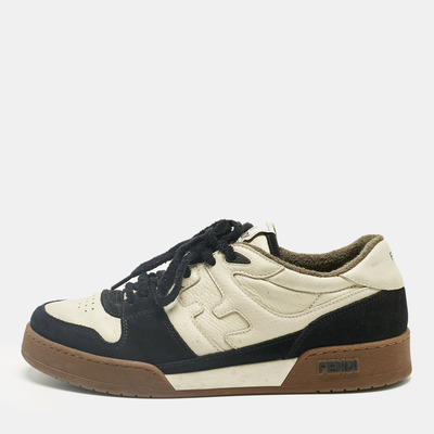 Fendi Cream/Black Leather and Suede Low Top Sneakers Size 43 1224498 (lpn31019041)