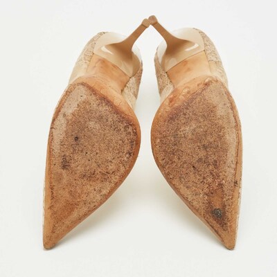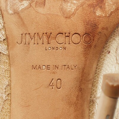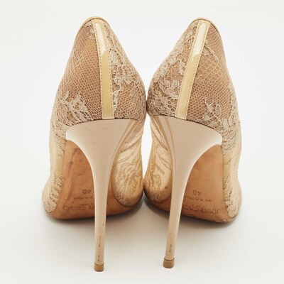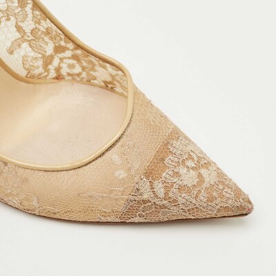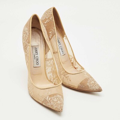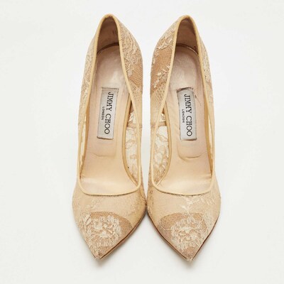 Romantic and refined, these Jimmy Choo Abel pumps feature intricate beige lace set over sheer mesh. The pointed silhouette adds a graceful touch to formal ensembles. Lightweight and elegant, they’re perfect for weddings, soirées, and special occasions.