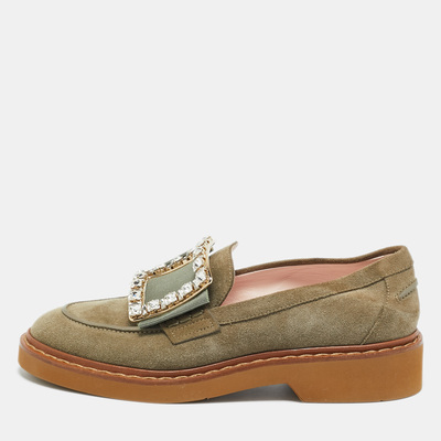Roger Vivier Green Suede Viv Rangers Loafers Size 38 1224184 (зелёный, lpn31019059)