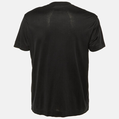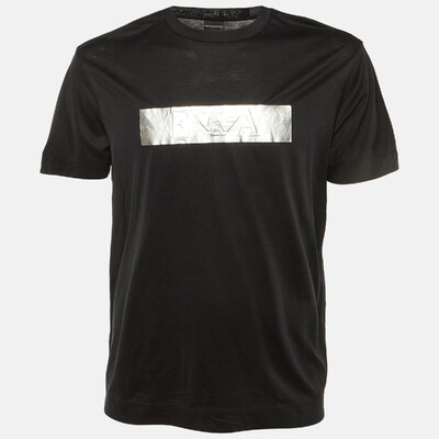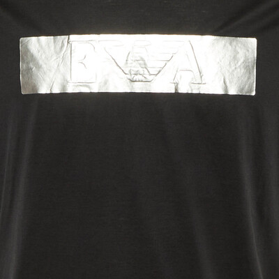 This black cotton knit T shirt from Emporio Armani exudes modern edge with its foil logo detail. The understated cut keeps it versatile, while the metallic accent adds a distinctive finish. A piece that elevates casual styling, it embodies the maison’s minimalist yet impactful design ethos.