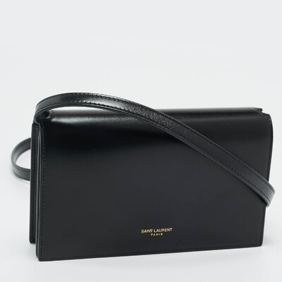 Saint Laurent Black Glossy Leather Flap Wallet On Chain 1224103 Saint Laurent (чёрный, lpn31019067)