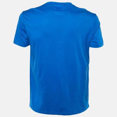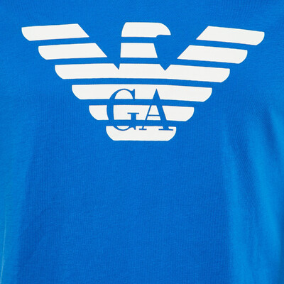Emporio Armani brings refined casualwear to the forefront with this blue cotton T shirt. Finished with a logo print, it balances contemporary branding with a clean silhouette. Easy to style with jeans or layered under jackets, it reflects the house’s streamlined approach to luxury essentials.