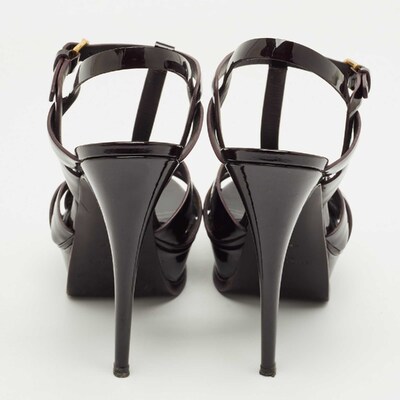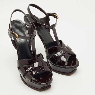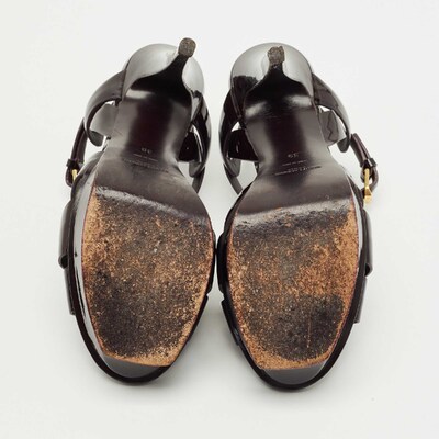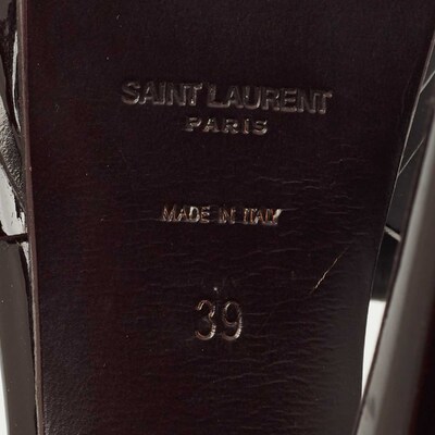 One of the most celebrated designs from Saint Laurent is their Tribute sandals. They are preferred by the fashion elite worldwide because of their practicality, and this green creation is no different. Created from patent leather, the pair flaunts an intertwined strappy vamp, ankle buckle closure, and gold tone hardware. The 10.5cm heels and platforms of this pair will take your fashion sense to new heights.