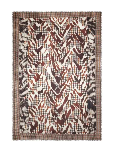 dark brown houndstooth and animal print frayed edges rectangular shape