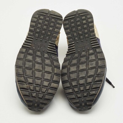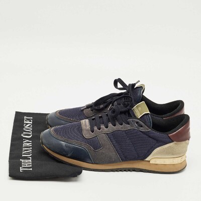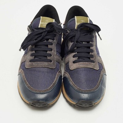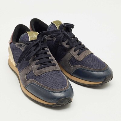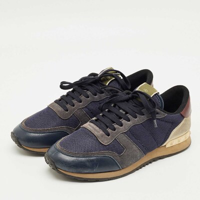Iconic and instantly recognizable, Valentino’s Rockrunner sneakers combine blue leather with breathable mesh panels. Signature stud accents add an edge to the sporty profile. Perfect for elevating casual edits with luxury appeal.