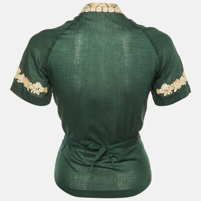 Dries Van Noten Green Embroidered Cotton Wrap Top S 1224163 - 1