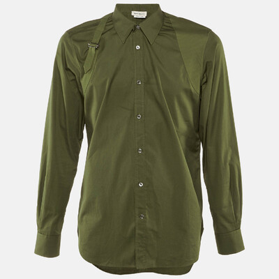 Alexander McQueen introduces sharp tailoring with this green cotton shirt. Its structured cut and classic button front design capture the brand’s balance between modernity and tradition. A versatile piece, it can be worn formally or styled with denim for a polished yet relaxed approach.