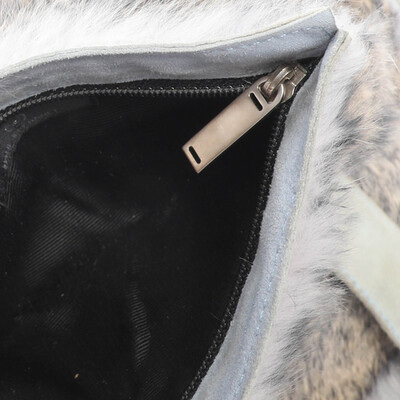 Luxuriously soft, this Chanel tote combines beige and blue rabbit fur with signature CC charm. A rare collector’s piece that blends cozy texture with couture appeal.