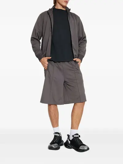 grey elastic waistband logo print side pockets