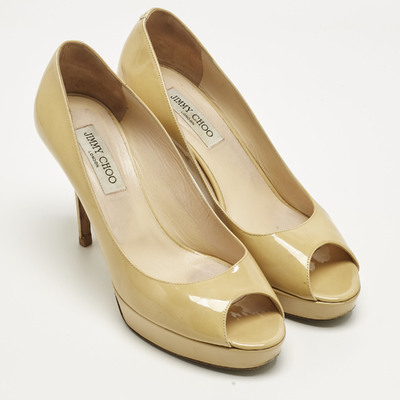 Jimmy Choo Beige Patent Leather Crown Peep Toe Platform Pumps Size 40.5 1223080 (бежевый, lpn31019234)