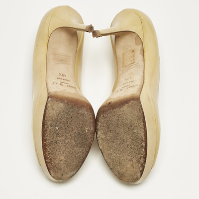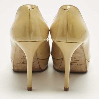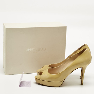 Jimmy Choo Beige Patent Leather Crown Peep Toe Platform Pumps Size 40.5 1223080 - 1