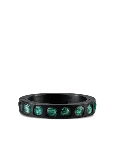 black sterling silver emerald embellishment pavé setting engraved logo Normal everyday use and external agents may reduce the lustre of gemstones and gold surfaces. To maintain, use specific, non-abrasive products specially meant for cleaning jewellery.
