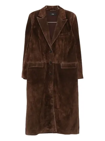 brown front button fastening notched lapels front flap pockets long sleeves straight hem