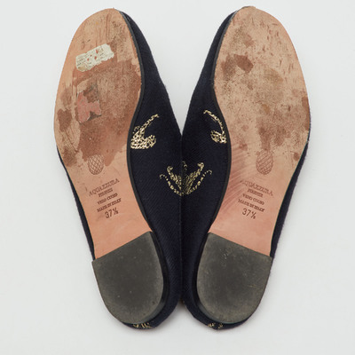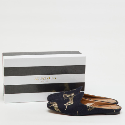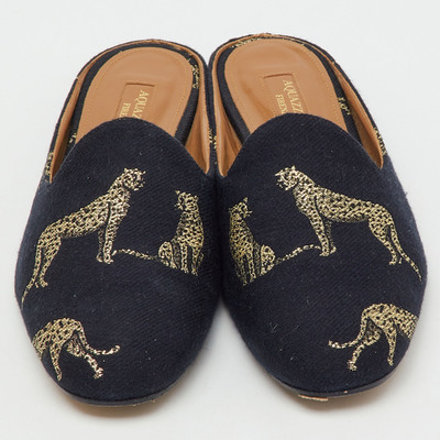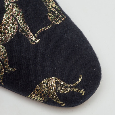 Aquazzura’s craftsmanship shines through in these jacquard mules, featuring intricate panther embroidery that enriches the black base with texture and allure. The easy slip on style balances comfort with artistic flair, making them a chic choice for both day and evening. Their refined design reflects the label’s mastery of turning bold motifs into wearable elegance.
