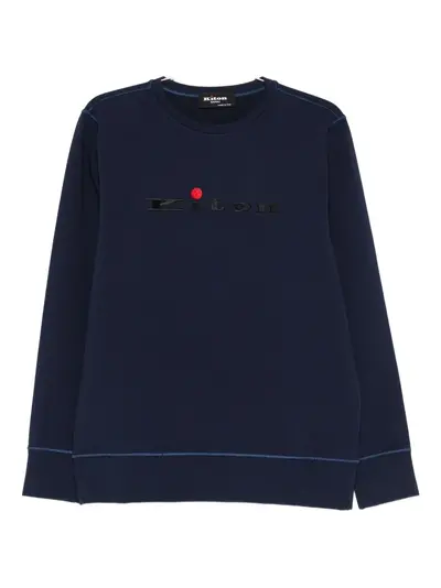 navy blue embroidered logo crew neck long sleeves ribbed hem ribbed cuffs
